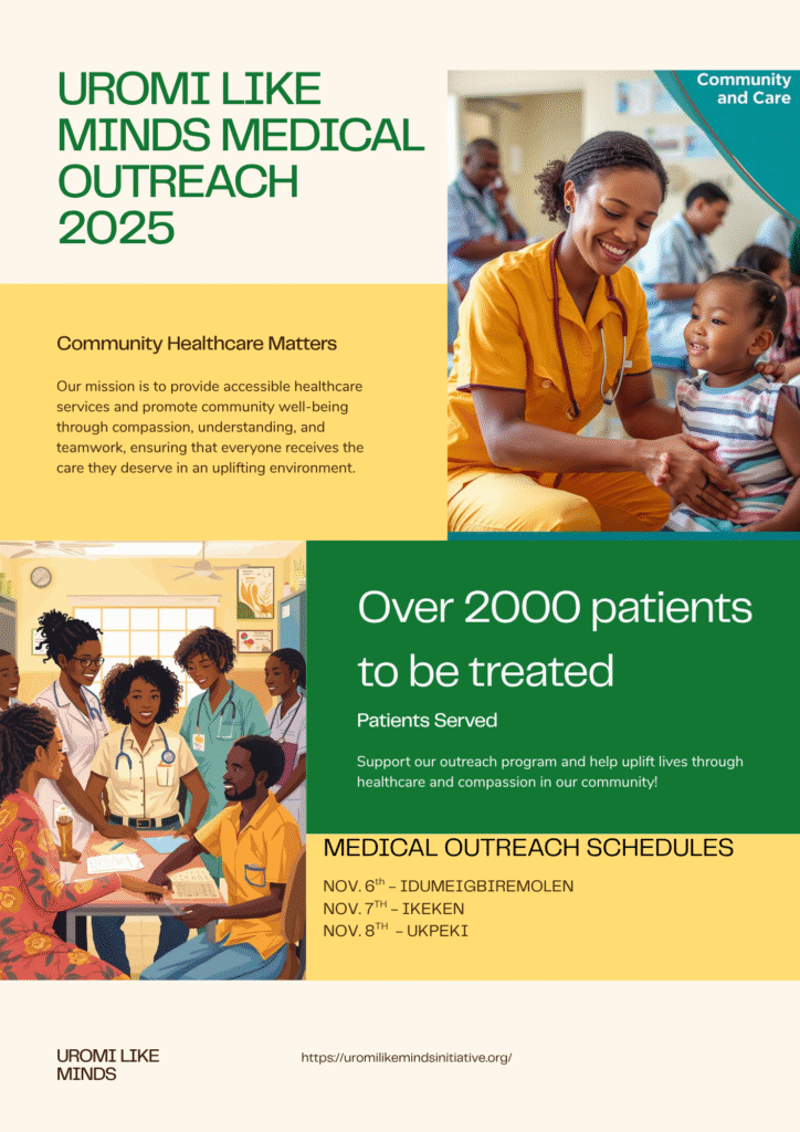 The Uromi Like Minds Initiative is a non-partisan, non-religious, and non-governmental association formed to foster the growth and development of Uromi and the wider society. Our mission is to bring together resources and support for the betterment of Uromi, providing an avenue for members to contribute to the community. The association operates on the principles of charity, collaboration, and accountability, and is committed to creating a better future for the people of Uromi.